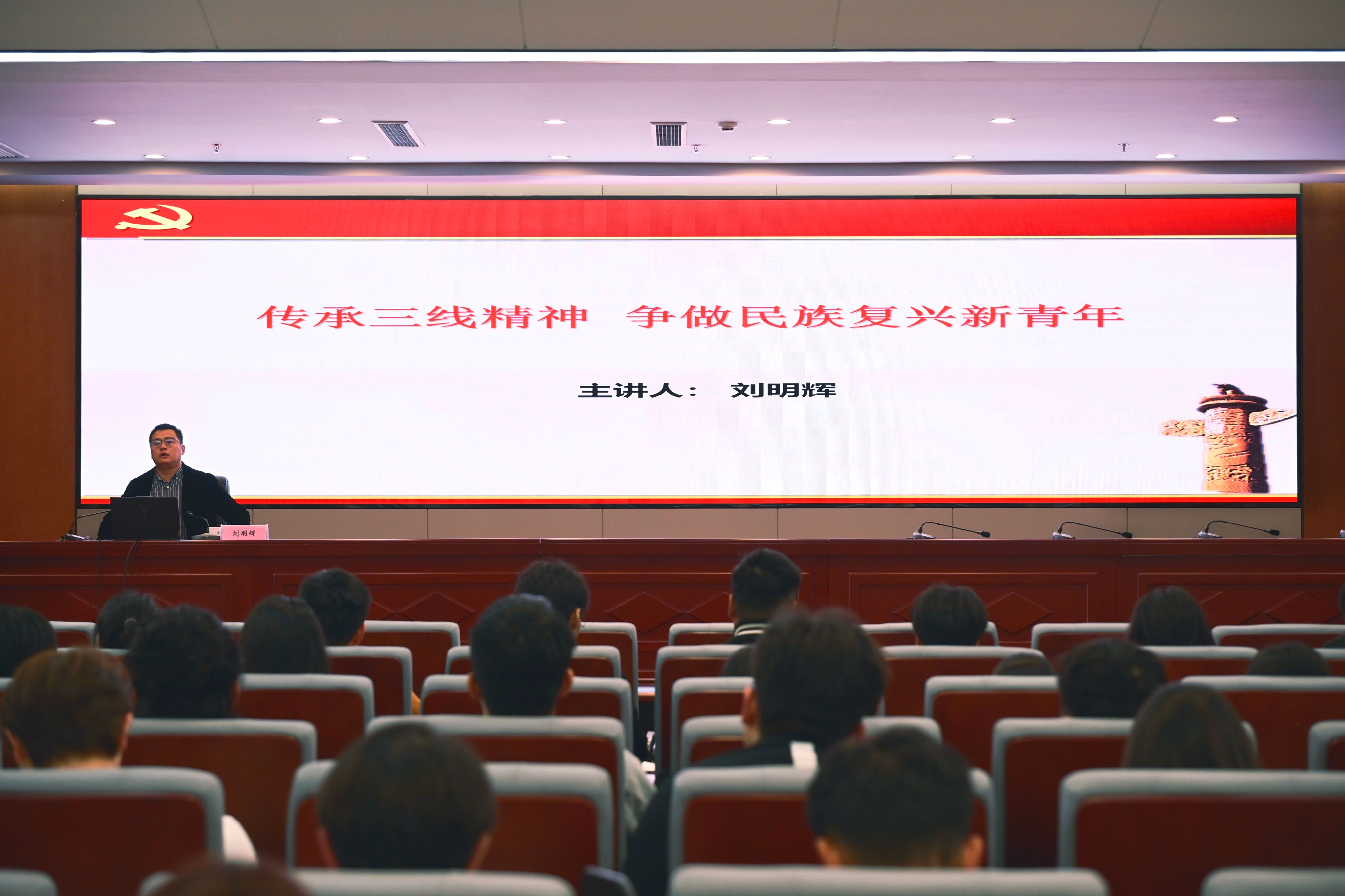 课上,刘明辉以三线建设背景为切入点,系统梳理了鄂西北三线建设的简史,阐释了“三线建设精神”的丰富内涵与时代价值,并勉励青马班学员要弘扬三线精神,做有理想、敢担当、能吃苦、肯奋斗的时代新人。