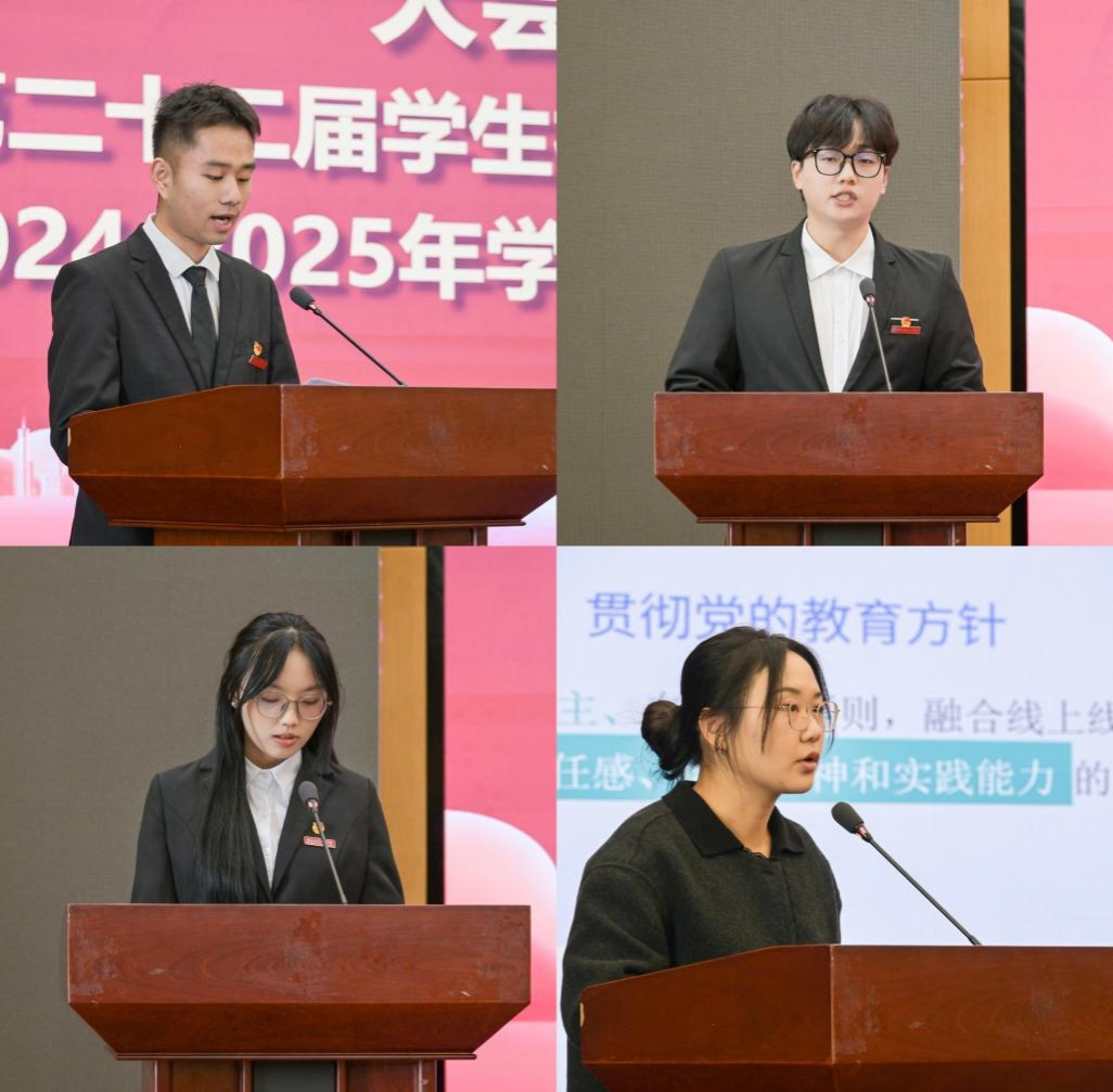 随后,第二十二届学生社团联合会主席吴争作2024-2025学年学生社团联合会工作报告,全面总结过去一年社联在组织建设、活动开展、社团服务等方面的实践成果与宝贵经验,深入分析当前社团发展的形势,明确未来的工作目标。