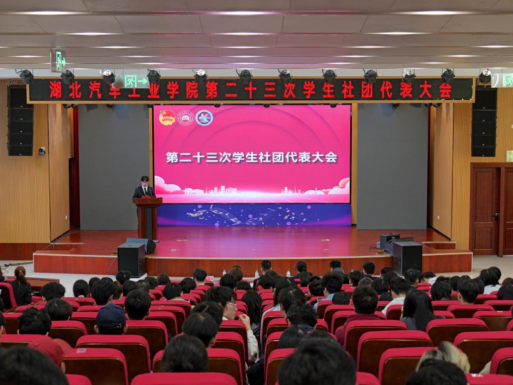 (文/赵紫娟 徐修良 图/青年传媒中心)11月2日上午,湖北汽车工业学院第二十三届学生社团代表大会在产教大楼四楼报告厅隆重举行。校团委文化与艺术中心主任高歌、第二十二届学生社团联合会主席团成员、各校级组织代表及社团代表出席本次会议。会议由郑博文主持。