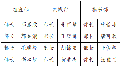经个人申请、资格审查、面试考核、公示等程序,由第六届校团委学工委主席团考核推荐,经校团委审核,确认高本旭等十二名同学为第六届团委学工委职能部门干部,现公示如下:
